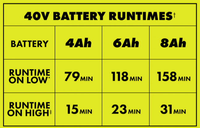 ✔ Long Runtime: Over 75 minutes per 40V 4Ah battery charge