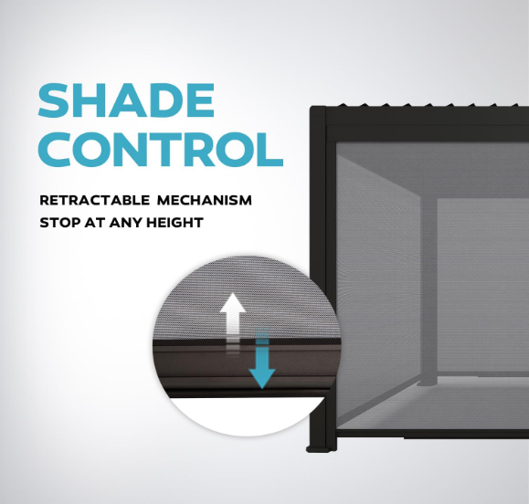 Enhance your outdoor living space with this 13Ft Adjustable Pull-Down Screen, designed specifically for 111S and 111DA pergolas. Combining privacy, protection, and modern style, it transforms your pergola into a comfortable and elegant retreat.