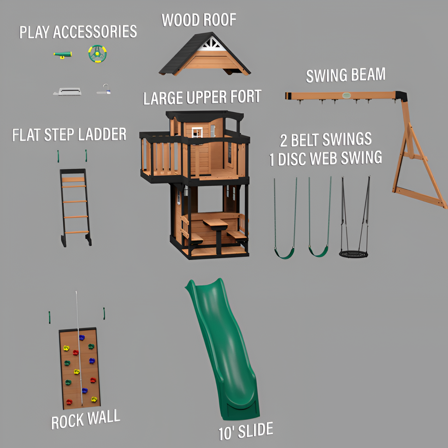 Turn your backyard into a fun-filled playground with this premium Wooden Playset, designed to inspire imagination, adventure, and active play for kids of all ages. Built with durable materials and packed with exciting features, it’s the perfect outdoor upgrade for endless entertainment.