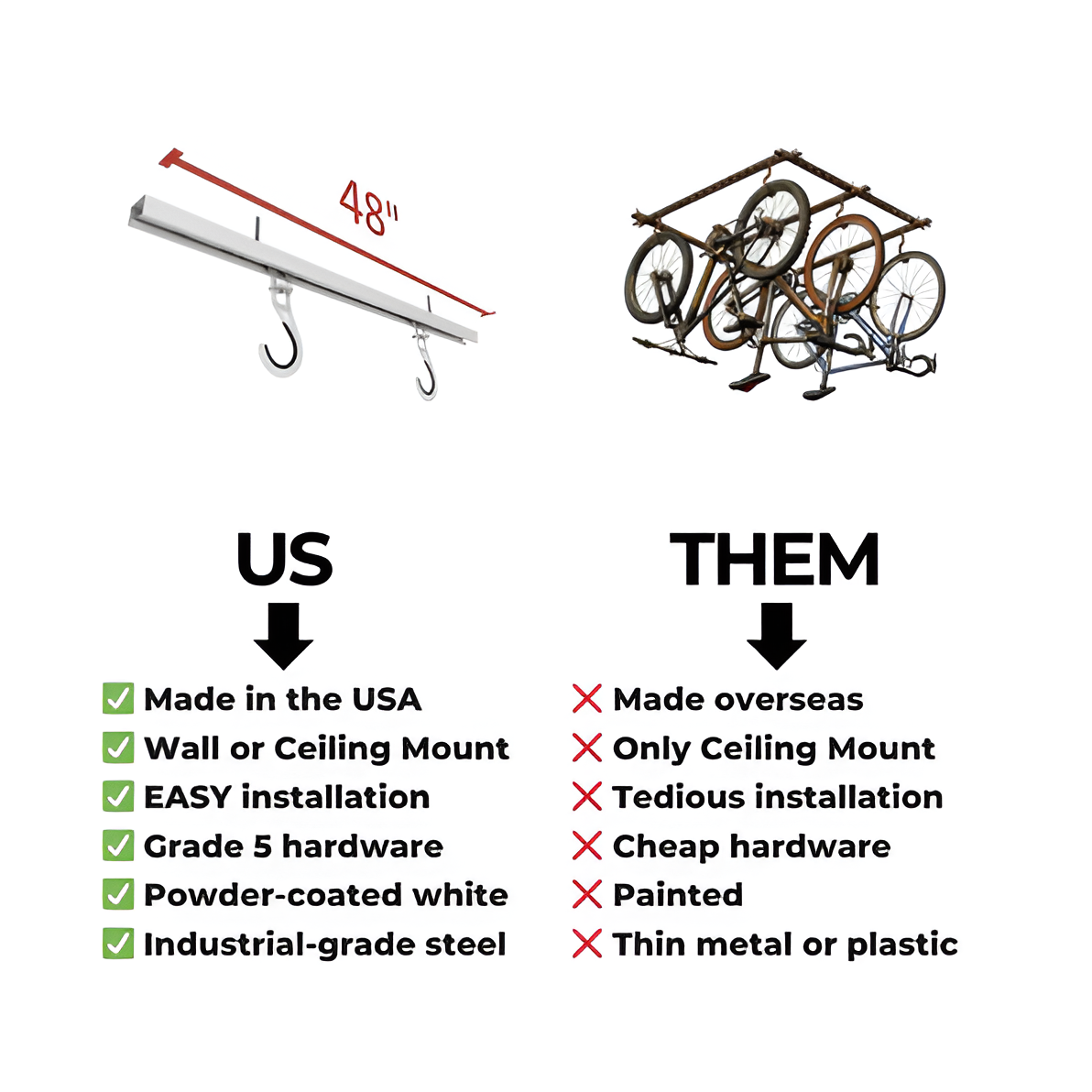 ✓ 48” Track Length – Provides ample space for organizing multiple bikes efficiently