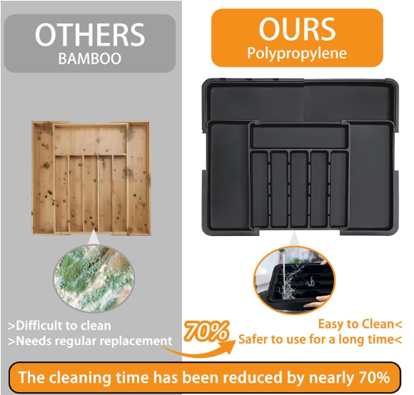 Keep your kitchen perfectly organized with this Expandable Silverware Drawer Organizer, designed for maximum flexibility, storage efficiency, and everyday convenience. With adjustable sizing and smart compartment design, it transforms any kitchen drawer into a clean and functional space.