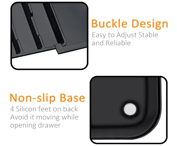 ✓ Non-Slip Stability – Built-in anti-slip feet keep the organizer securely in place inside the drawer
