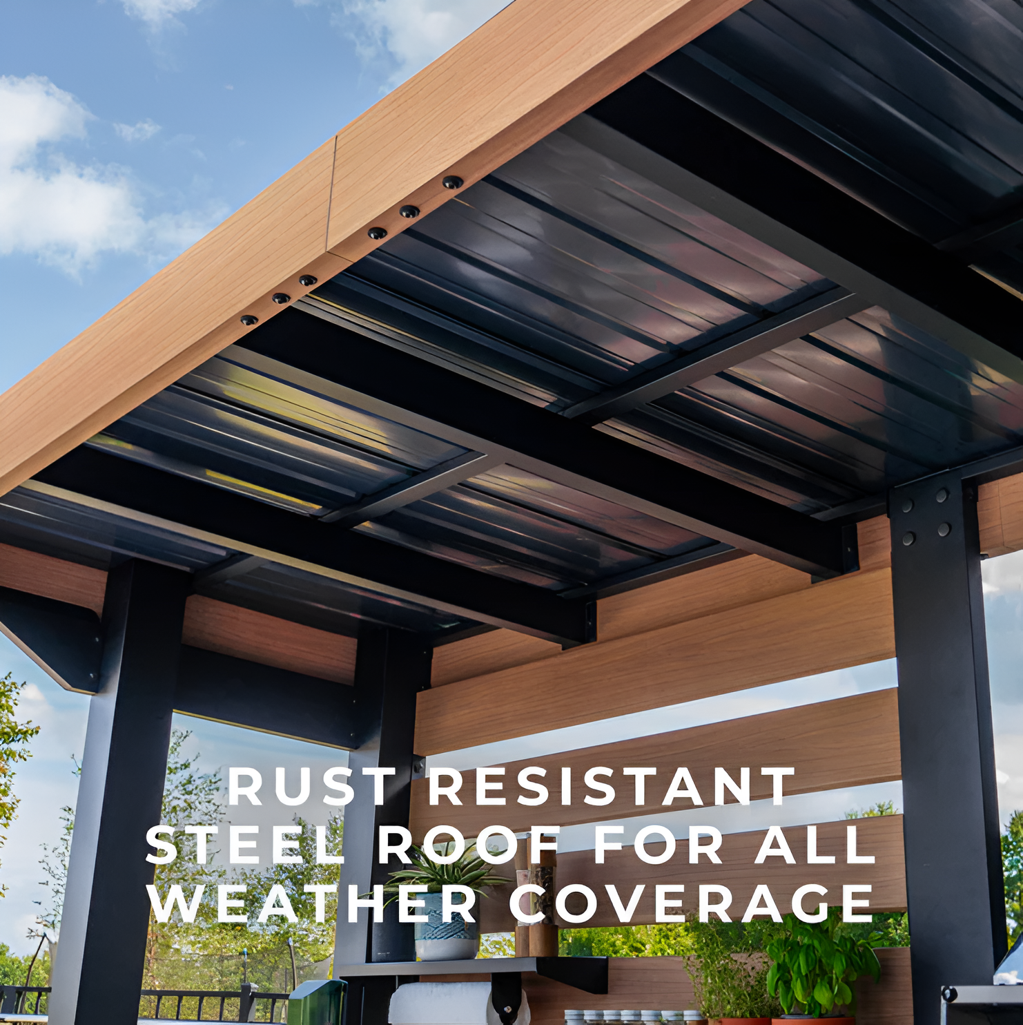✓ All-Weather Durability – Pro-Tect™ tested to withstand up to 2,100 lbs of snow load and winds up to 100 mph with a full-coverage galvanized steel roof