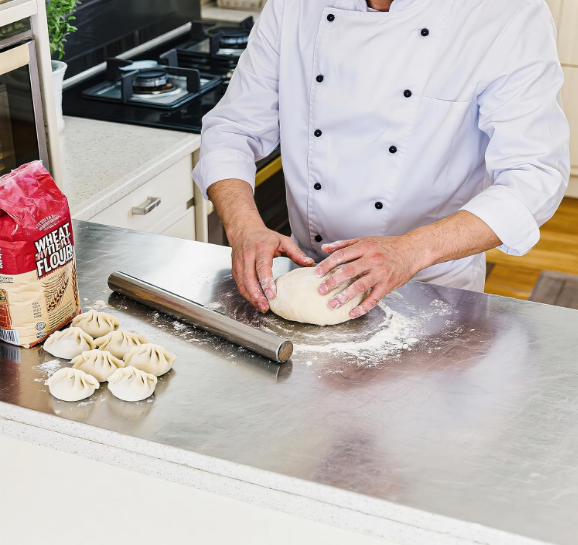 Large Stainless Steel Cutting Board with Lip – 35.4” x 22.8” Non-Stick Baking & Kneading Surface