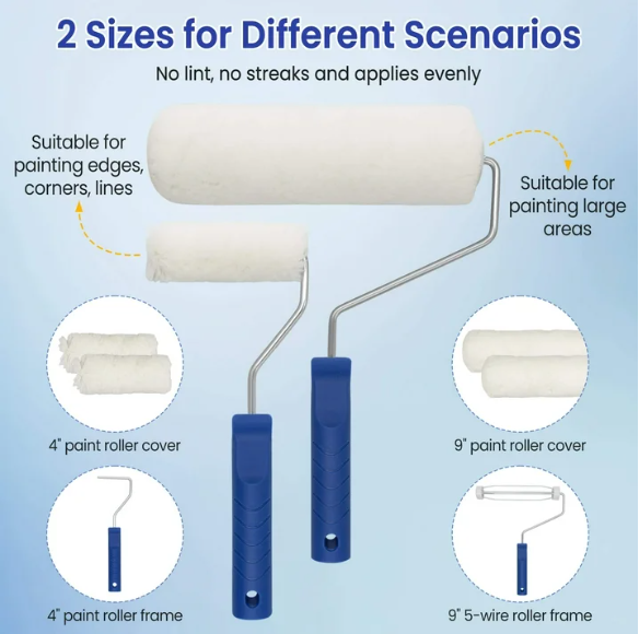 ✔ High-Quality Acrylic Roller Covers: Absorb plenty of paint, leave no lint or streaks, and deliver flawless, even coverage on walls, trim, doors, and cabinets.