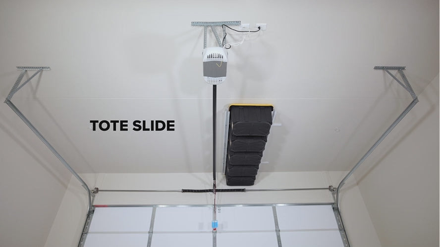 Maximize your garage storage with the Tote Slide Adjustable Rails – a flexible overhead system designed to organize 3–5 storage totes efficiently. Perfect for seasonal items, decorations, or gear, it keeps your space neat and your bins easily accessible.