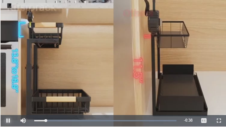 Maximize your cabinet space with this heavy-duty 2-tier pull-out organizer. Perfect for under-sink storage, it holds up to 50 lbs and keeps bottles, cleaning supplies, and toiletries neatly accessible.